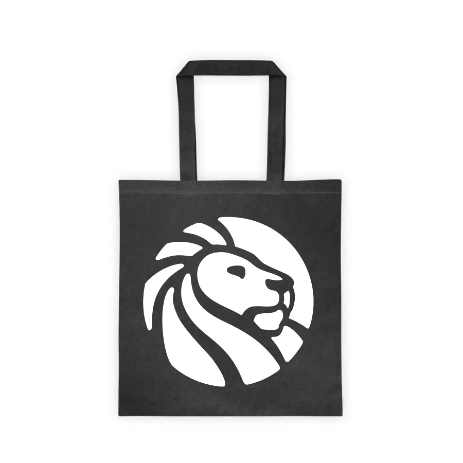 Product: Black, double-sided tote bag.