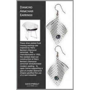 Enjoy elegant, fluid design with these silver plated earrings inspired by Harry Bertoia’s Diamond armchair. Bertoia wrote about his iconic mid-century design, “My feeling was that it had to come almost from an inward direction. I began to rely once more on my own body. The chairs are studies in space, form and metal, too.”